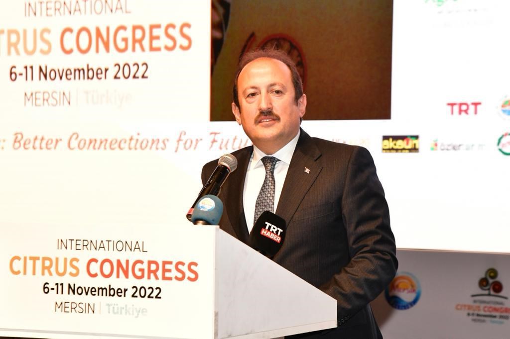 Tarım ve Orman Bakanı Sayın Prof. Dr. Vahit Kirişci, kaynakların tüketilmesi yerine doğru yönetilmesinin zorunluluk olduğuna dikkati çekerek, “Türkiye olarak ekonomik açıdan karlı ve verimli, insan sağlığını koruyan ve çevreye önem veren bir turunçgil üretim sistemi hedeflediğimizi belirtmek isterim. Bu hedefe ulaşmak üzere turunçgil üretimi yapan tüm ülkelerle tecrübelerimizi paylaşmaya ve iş birliği yapmaya hazırız. Ülke sınırlarını aşan iklim değişikliğiyle mücadelede yapacağımız iş birliği, insanlığa önemli katkılar sunacaktır. İnanıyorum ki bu kongre, uluslararası düzeyde yapacağımız iş birlikleri için verimli bir platform oluşturacaktır.” değerlendirmesinde bulundu.