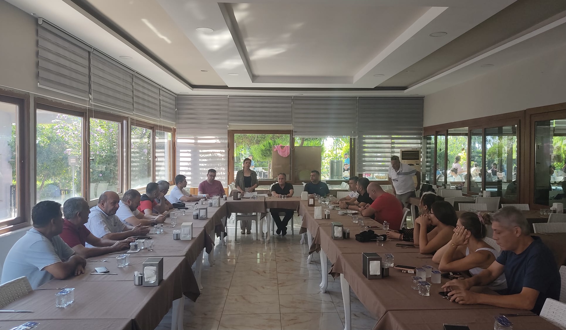 Akdeniz Bölgesinde 7 il ve 4 ilçede örgütlenerek yaklaşık 2 bin üyeye ulaşan AGF’in cemiyet başkanlarından oluşan yönetimi 2 gün boyunca Mersin’de bir dizi ziyaret ve etkinlik gerçekleştirdi. Etkinliğin son gününde konuk gazetecilerle MEİGDER üyeleri kahvaltıda bir araya geldi. Dilek ve temennilerin ardından söz alan AGF Genel Başkanı Gaye Coşkun, Mersin Buluşmalarının bir başlangıç olduğunu söyledi. Organizasyonda emeği geçenlere teşekkür eden Coşkun, “Bir sonraki programda buluşuncaya dek hoş kalın diyorum. Bu arada diyaloğumuzu hiçbir zaman eksik tutmayalım. Aynı anda ortak ses çıkartabilmenin şu ortamda çok büyük bir önemi var. Sıkıntılarımız çok büyük bununla ilgili mücadelelerimiz devam edecek. İnşallah bu yönde kararlılıkla sektörümüzü daha iyi yerlere getirecek çalışmalara imza atarız. Buraya gelen arkadaşlarımıza da teşekkür ediyorum. Bu gönüllü çalışma; sosyal sorumluluğun hepsinden önemlisi mesleğimizin geleceğinden duyduğumuz sorumluluğun bir sonucudur. Akdeniz Bölgesi’nin en doğusuyla en batısı bir arada buluştuk. Herkesin emeğine sağlık. Bir sonraki programda görüşmek umuduyla hoşça kalın” diyerek AGF üyesi gazeteci cemiyeti başkanlarına veda etti.