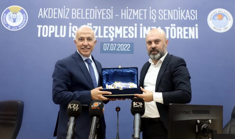 Akdeniz Belediyesi ile Hizmet İş Sendikası’na bağlı işçileri kapsayan Toplu İş Sözleşmesi (TİS) törenle imzalandı. Toplamda 730 çalışanı ilgilendiren sözleşme ile imar şirketi ile belediye şirketinde çalışan personelin ücretlerinin yanı sıra, özlük haklarında da ciddi iyileştirme sağlandı. Başkan Gültak; yılsonunda oluşacak yıllık enflasyon farkı oranındaki artışı da işçilerin maaşlarına yansıtacaklarını belirtti.