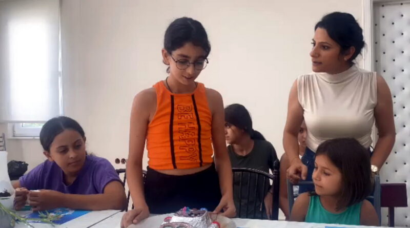eğitim alan çocuk kursiyerlere “Geri Dönüşümün Önemi ve Çevre Bilinci” konulu eğitim