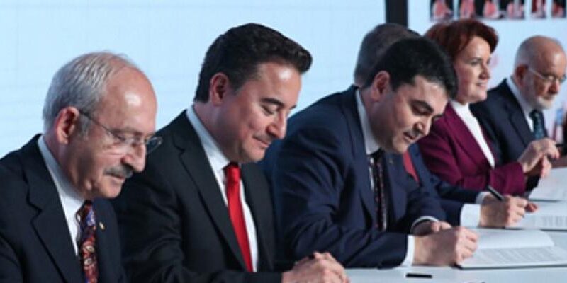 DEVA Partisi Genel Başkanı Ali Babacan, CHP Genel Başkanı Kemal Kılıçdaroğlu, Demokrat Parti Genel Başkanı Gültekin Uysal, Gelecek Partisi Genel Başkanı Ahmet Davutoğlu, İYİ Parti Genel Başkanı Meral Akşener ve Saadet Partisi Genel Başkanı Temel Karamollaoğlu Güçlendirilmiş Parlamenter Sistem için oluşturdukları mutabakat metnini imzaladı.