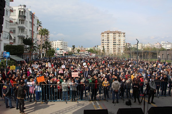 Mersin Emek ve Demokrasi Platformu adına ortak açıklamayı Elmas Kara ve Murat Doğan yaptı. Açlık, işsizlik ve yoksulluğun derinleşerek devam ettiğini söyleyen Kara ve Doğan, “Bir tarafta yoksulluk diğer tarafta israf, bir tarafta açlık, diğer tarafta şatafatın yaşandığı ülkemizde bir kesim lale devri yaşarken, her yerden emekçiler ve yoksul halkımızın geçinemiyoruz çığlıkları yükselmeye devam ediyor. Her yeni güne yeni bir zam haberiyle uyanıyoruz. Asgari ücrete, maaşlarımıza ve emeklilere yapılan göstermelik artışlar daha ceplerimize girmeden eriyip buharlaştı. Toplumun geniş kesimlerinin temel harcama kalemleri olan kira, ulaşım, doğalgaz, elektrik ve gıda ürünlerinde yapılan fahiş zamlar geçinmemizi, ay sonunu getirmemizi imkânsız hale getirdi” dedi.
