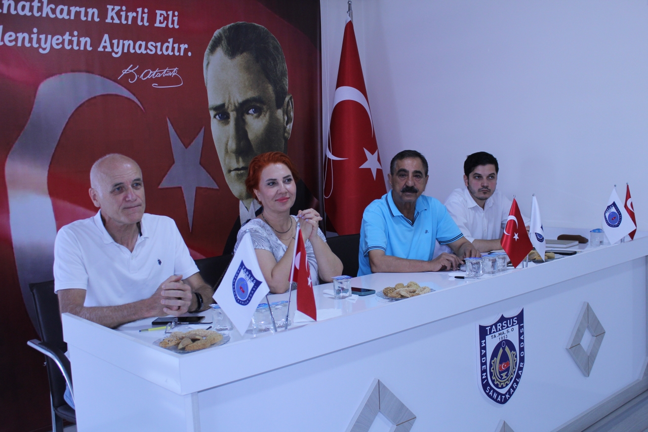 Mersin Madeni Sanatkarlar Odası Hizmet binasında gerçekleştirilen tanıtım toplantısına Mersin Esnaf ve Sanatkarlar Odaları Birliği Yönetim Kurulu Başkanı Veysel Sarı ile Birlik yöneticileri ve ilçede kurulu meslek odası başkanları katılım gösterdi.