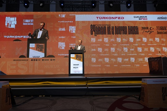 TÜRKONFED 24. Girişim ve İş Dünyası Zirvesi, ‘Cumhuriyet’in 2. Yüzyılında Yeni Dönem Yeni Ufuklar’ ana teması ve ‘Hayalimizdeki Türkiye’ mottosu ile 2-3 Aralık tarihlerinde Adana’da, Çukurova Sanayi ve İş Dünyası Federasyonu’nun (ÇUKUROVASİFED) desteği, Adana Sanayici ve İş İnsanları Derneği’nin (ADSİAD) ev sahipliğinde gerçekleşti. Bölgede yer alan Adana, Mersin ve Hatay’ın birçok konuda ortak çalışmalar yapabileceğine dikkat çeken Başkan Seçer, “Ama öncelikle bölgesel bir işbirliği kalkınma stratejisinin belirlenmesi gerekir. Bunda tabi ki merkezi hükümetin alacağı kararları da önemsemek lazım” dedi.