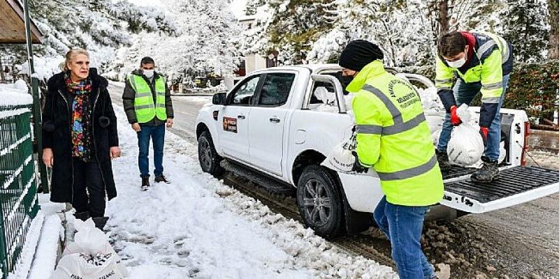 2021-2022 tarihlerinde ilk etapta 507 muhtara yirmişer kiloluk 15 bin 105 torba ulaştıran Büyükşehir Belediyesi ekipleri toplamda 302 bin 100 kilogram tuz dağıttı.