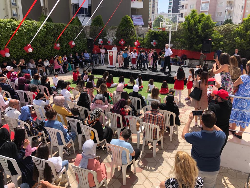 Mersin Basut Koleji öğrencileri hazırladıkları 23 Nisan kutlama programı ile velilerine unutulmaz bir gün yaşattı. 23 Nisan Ulisal Egemenlik ve Çocuk Bayramı kutlamaları için bir süredir öğretmenleri eşliğinde hazırlıklar yapan Basut Koleji’nin minik öğrencileri müzik eşliğinde dans gösterileri, şiirler, mini tiyatrolar ve seslendirdikleri İngilizce şarkılarla göz doldurdu. Veliler, öğrencilerin gösterilerini ilgi ile izleyerek bol bol fotoğraf ve video çekti.