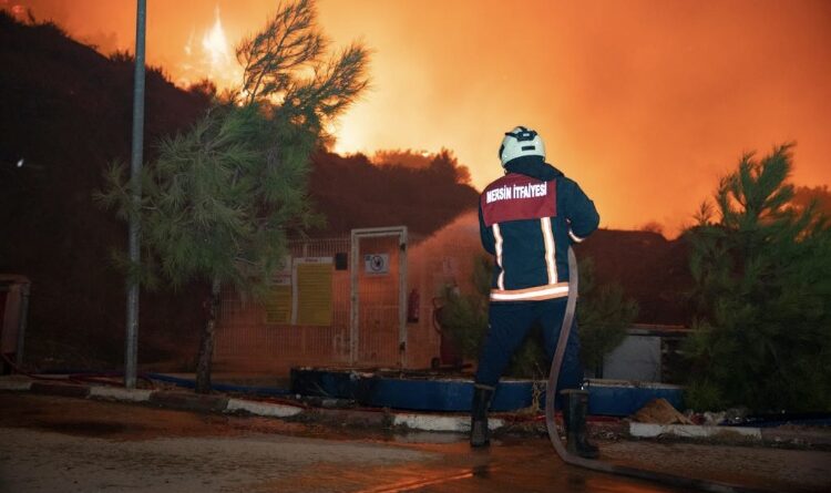Mersin Büyükşehir Belediyesi Afet Arama ve Kurtarma Şube Müdürü Alperen Tabak, “Yaklaşık 23 araç ve 35 personelle, Mersin İtfaiye Daire Başkanlığı olarak görev yerindeyiz ve çalışmalarımıza devam ediyoruz. Şiddetli poyraz estiğinden dolayı, ekiplerimiz yangını kontrol altına alamadı. Evlere sirayet etmemesi için elimizden geleni yapmaktayız. Şu anda 3, 5 ve 8 tonluk araçlarımızla, yangının evlere sirayet etmemesi için yangın araçlarımızdaki su takviyelerini yapmaktayız. Şu an benzin istasyonlarına ve evlerin önüne konuşlandırılmış durumdayız. Kahramanmaraş’tan, Kayseri’den, Antalya’dan, Hatay’dan, Adana’dan ve sayamadığım birçok ilden arazözlerle takviye ekipler, şu anda bizimle beraber çalışmakta. Tüm Belediye itfaiyeleri olarak tek yürek olduk” diye konuştu.