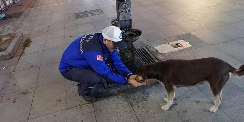 Zabıta Memuru Ercan Sevinen’in sokak köpeğine olan sevgisi ve elleriyle su içirmesi ise cep telefonu kamerası tarafından görüntülendi. Görüntü, kısa sürede paylaşım rekoru kırarken, yılbaşı akşamı gönülleri ısıttı.
