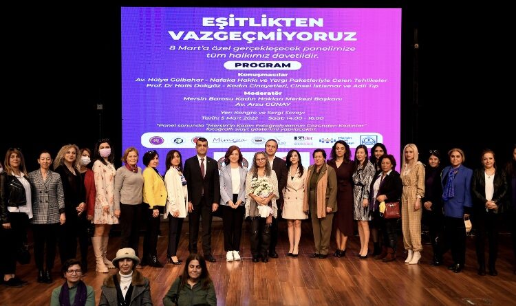Büyükşehir Belediyesi Kadın ve Aile Hizmetleri Dairesi öncülüğünde düzenlenen “Eşitlikten Vazgeçmiyoruz” paneline Mersinden Kadın Kooperatifi Başkanı Meral Seçer’in yanı sıra Büyükşehir Belediyesi’nin daire başkanları katılım gösterdi. Kongre ve Sergi Sarayı’nda halka açık olarak iki saat boyunca devam eden panelin açılış konuşmasını Mersin Barosu Başkanı Avukat Gazi Özdemir yaptı. Panelin moderatörlüğünü Mersin Barosu Kadın Hakları Merkezi Başkanı Avukat Arzu Günay yürütürken, Prof. Dr. Halis Dokgöz ile Avukat Hülya Gülbahar’ı panele katılanlar ilgiyle dinledi.