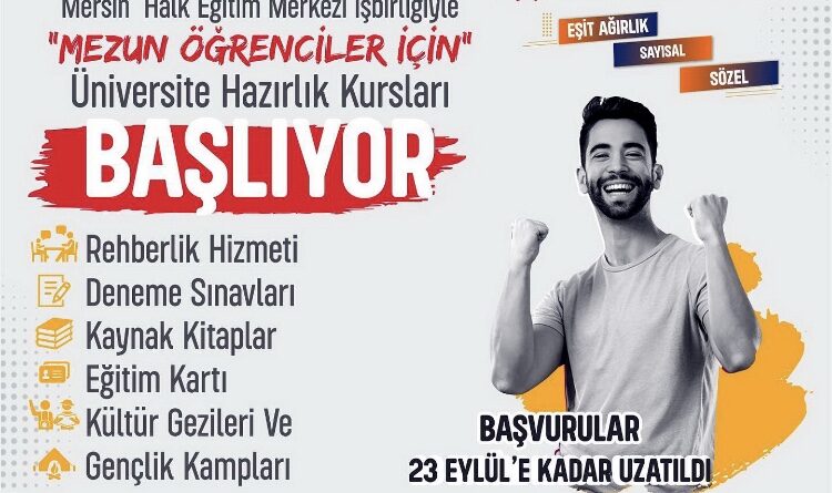 Akdeniz Belediyesi’nin, lise mezunu gençlere yönelik düzenlediği ücretsiz üniversite hazırlık kurslarına başvuru süresi 23 Eylül 2022 tarihine kadar uzatıldı. Gençlere seslenen Başkan Gültak, bu fırsatı mutlaka değerlendirmelerini istedi; “Şimdi yeni başarı hikâyeleri yazmanın tam zamanıdır” dedi.