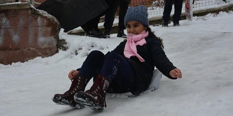 Keçiören'de karın keyfini ise poşetlerini alarak sokaklarda kayak yapan çocuklar çıkardı.