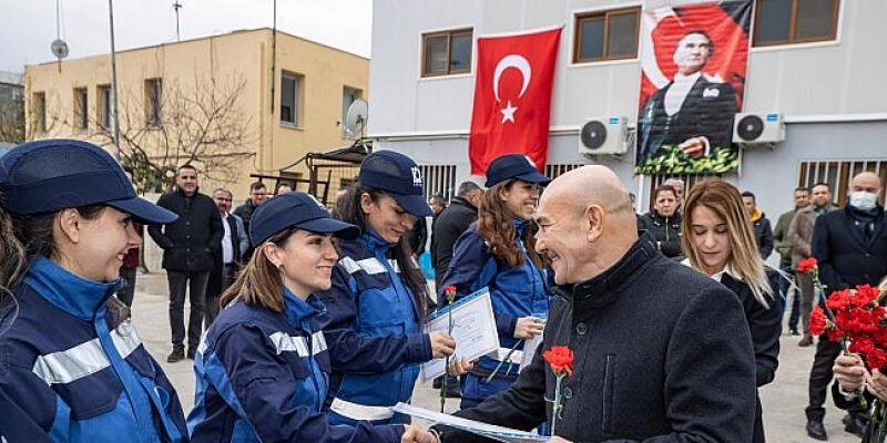 İzmir Büyükşehir Belediye Başkanı Tunç Soyer’in toplumsal cinsiyet eşitliği vizyonu kapsamında iş makinası operatörü ve ağır vasıta şoförü 30 kadın 8 Mart Dünya Kadınlar Günü öncesinde İZSU Genel Müdürlüğü bünyesinde işbaşı yaptı. İzmir Büyükşehir Belediyesi Meslek Fabrikası’ndaki eğitim sürecini başarıyla geçen personele sertifikalarını veren Başkan Soyer gurur duyduğunu ifade ederek, “Artık İzmir’in altyapısında kadın eli, kadın emeği daha fazla olacak” dedi. Yeni kadın personel ise önyargıları kırmaya hazır.