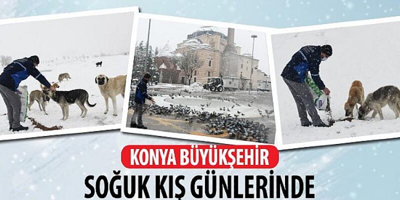 Konya Büyükşehir Belediyesi, ağırlaşan mevsim şartları nedeniyle yiyecek bulmakta zorlanan sokak hayvanlarını unutmuyor.