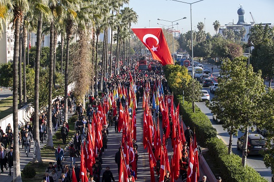 Programa; Başkan Seçer’in yanı sıra Mersin Valisi Ali Hamza Pehlivan, Akdeniz Bölge ve Garnizon Komutanı Tuğamiral Fuat Gedik, milletvekilleri, kent protokolü, gaziler ve siyasi parti temsilcileri katıldı. Mersin Valiliği, Akdeniz Bölge ve Garnizon Komutanlığı ve Mersin Büyükşehir Belediye Başkanlığı tarafından Atatürk Anıtı’na çelenk sunuldu.