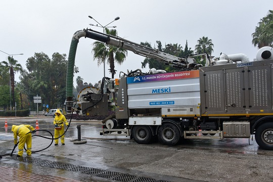 Mersin Büyükşehir Belediyesi, Meteoroloji Genel Müdürlüğü’nün Mersin genelinde beklenen çok kuvvetli yağış ve kuvvetli rüzgar uyarısı üzerine teyakkuza geçerek, tüm birimleriyle sahada çalışma yürütüyor. MESKİ ekipleri de olaylara hızlı ve etkili bir şekilde müdahalede bulunmak için kentin birçok bölgesinde gelen ihbarlar ve talepler üzerine harekete geçiyor.