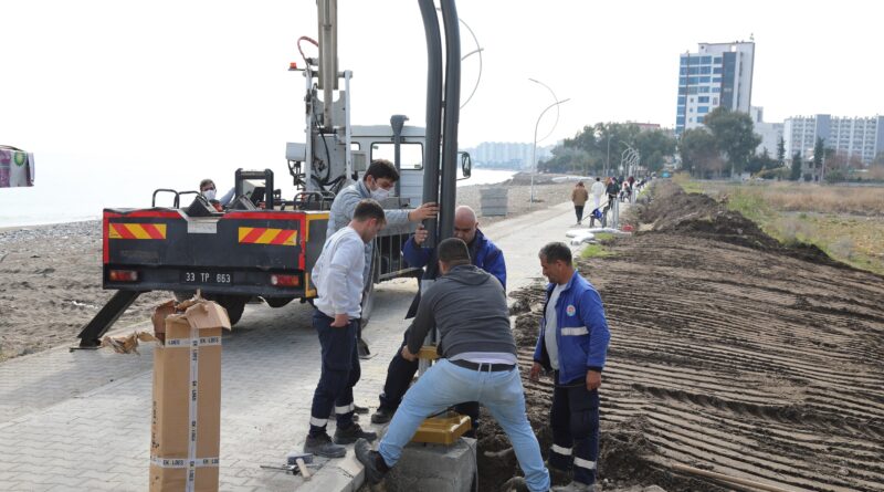 Mezitli sahillerine aydınlatma sistemi çekiliyor