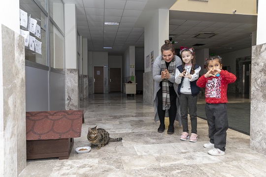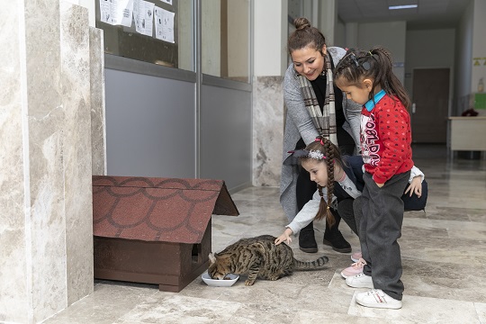 Yunus Emre İşitme Engelliler Okulu’nda özel eğitim sınıfı öğretmeni Aslı Yıldırım ise, evcil hayvan beslemenin yüksek stres ve kaygı üzerinde olumlu etkilerinin olduğunu belirterek, özel çocukların empati ve sorumluluk gibi duygularını da artırdığını söyledi. Yıldırım, “Öğrencilerimize hayvan sevgisini aşılamaya çalışırken, bir kedi sahiplendik. Ela Nur, bizim çok özel bir öğrencimiz. Kendisi okulumuzun gözbebeği sayılır. Onun bir talebi vardı. Kedimize bir ev istedik. Sağ olsun Büyükşehir Belediyesi, bizim bu talebimizi geri çevirmedi. Çok ilgililerdi. Kedi Evi’ni bugün getirdiler. Çok teşekkür ederiz. Boncuk ev sahibi oldu, Ela çok mutlu oldu. Bizim için onların yüzlerindeki mutluluk, her şeyden önemli” diye konuştu.