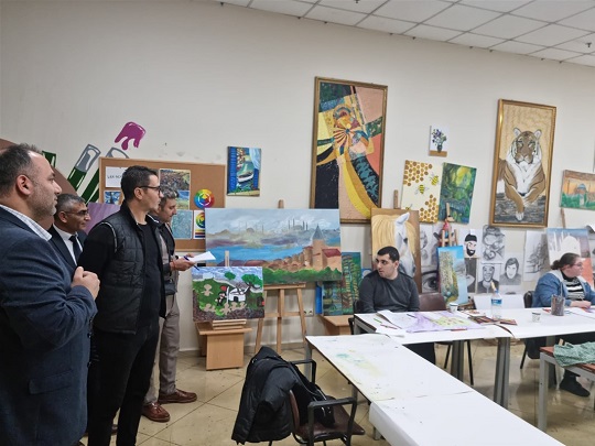 Gençlik ve Spor İl Müdürü Ökkeş Demir ve Gençlik Faaliyetleri Şube Müdürü Cafer Bozkurt, Bağcılar engelliler sarayı yetkilileri ile birlikte Türkiye’de bir ilk olan ve tüm engellilerin sosyal, kültürel, sanatsal, mesleki eğitim ihtiyaçlarına cevap vermek üzere inşa edilmiş Bağcılar Engelliler Sarayı’nın içerisinde hizmet veren 40’a yakın atölyede verilen kursları ve birimleri tek tek gezerek, notlar ve yetkililerden yapılan çalışmalar hakkında bilgi aldı.