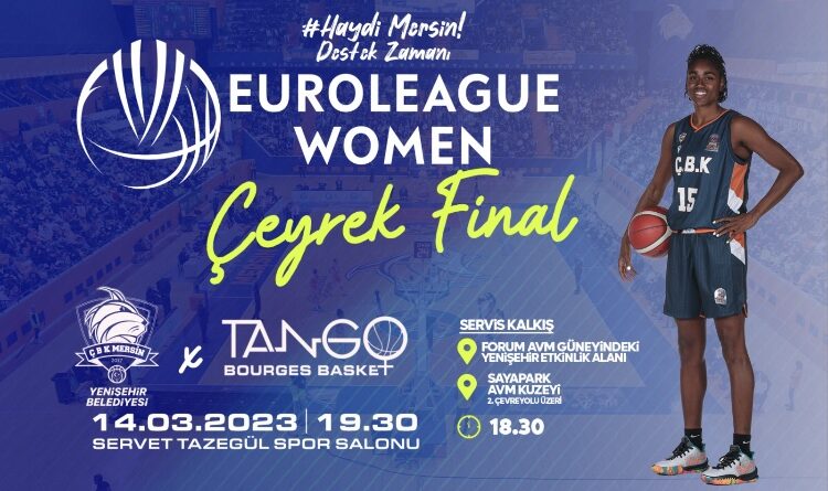 Bu sezon Cumhurbaşkanlığı Kupası’nı kazanan ÇBK Mersin Yenişehir Belediyesi,Euroleague Women çeyrek finalinde Fransa temsilcisi Tango Bourges Basket ile karşı karşıya gelecek. 14 Mart Salı(yarın) günü Servet Tazegül Spor Salonu’nda saat 19.30’da oynanacak maç için Mersin Yenişehir Belediyesi saat 18.30’da Forum AVM güneyindeki Yenişehir Etkinlik Alanı ve Sayapark AVM önü2. Çevreyolu üzerinden servis kaldıracak. Turuncu-lacivertli takım serininilk maçını kazanarak, Fransa’da oynanacak maç öncesinde avantaj yakalamak istiyor. Sezonun şu ana kadarki en önemli maçına çıkacak olan ÇBK Mersin Yenişehir Belediyesi,kentindesteğini bekliyor.