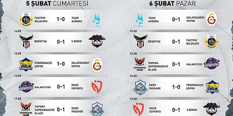 Geçtiğimiz hafta namağlup şekilde zirvede oturan Team Aurora’nın galibiyet serisi ise son buldu. Bu hafta çıktığı 2 karşılaşmayı da kaybeden Team Aurora, 5 Ronin ve fastpay Wildcats ile ikinciliği paylaşıyor. Hem 5 Ronin hem fastpay Wildcats bu hafta 2’şer galibiyet alarak zirve yarışına ortak oldu.