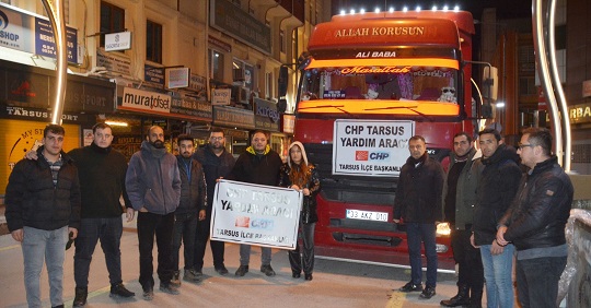 CUMHURİYET Halk Partisi (CHP) Tarsus İlçe Örgütü tarafından, Kahramanmaraş merkezli olarak yaşanan ve 10 ilde yıkıcı etki bırakan depremler sonrası mağduriyet yaşayan vatandaşlara ulaştırılmak üzere yardım tırı gönderildi. Partili üyeler ve hayırsever vatandaşların destekleriyle toplanan gıda ve ihtiyaç maddeleri tıra yüklenerek, CHP Gençlik Kolları Başkanı Adil Bal ve partili gençlerin nezaretinde Hatay’a götürüldü.