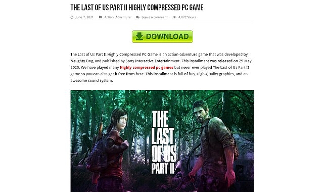 Siber suçlular, halkın bilinçsizliğinden aktif olarak yararlanıyor. Kaspersky araştırmacıları da PC’ye “The Last of Us: Part II” indirmeyi teklif eden bir site keşfetti. Oyunun bu versiyonunun henüz bilgisayarlara gelmediğini (Hatta henüz duyurulmadı bile) bilmeyen kullanıcılar, gerçek oyun yerine zararlı bir dosya indireceklerdir. Bu kötü amaçlı dosya yıllarca fark edilmeden bilgisayarda saklanabilir, bir şeylerin ters gittiğini anlamazsınız çünkü gözle görülür bir zarara neden olmayabilir, sadece sessizce işini yapar.