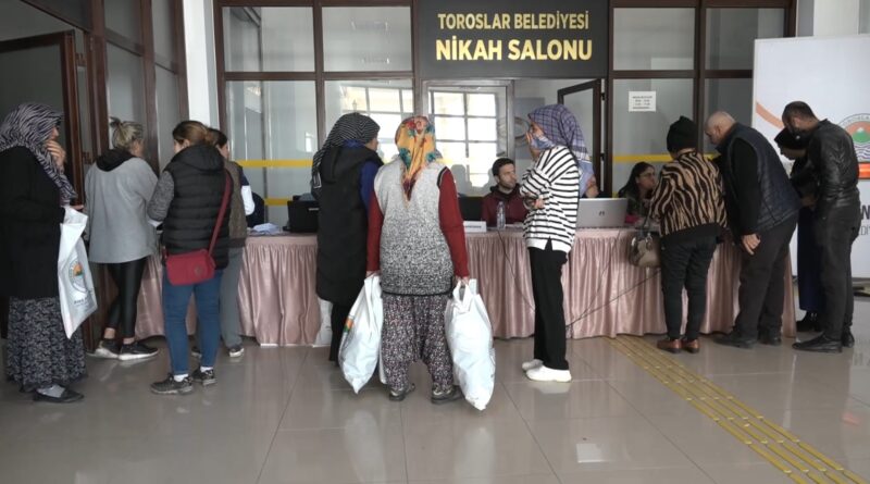 Toroslar Belediyesi, afet bölgesinden Mersin’e gelerek ilçede konaklayan depremzede vatandaşlara gıda ve hijyen malzemesi yardımında da bulunuyor.