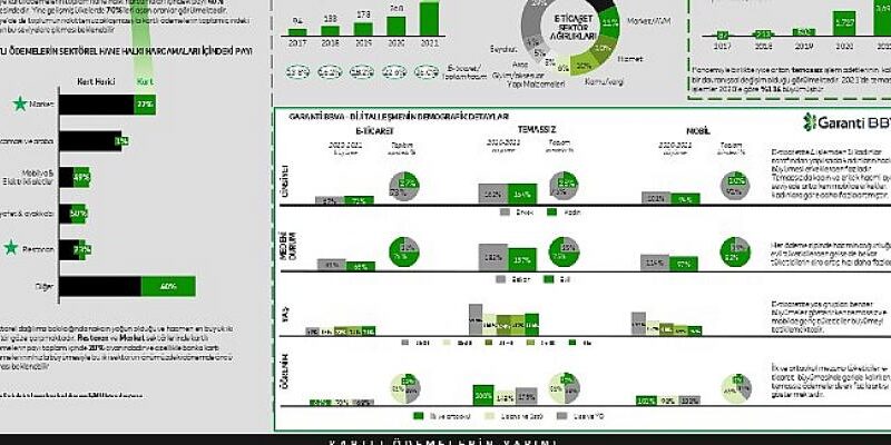 Garanti BBVA Ödeme Sistemleri (GÖSAŞ), Mastercard ile ortaklaşa gerçekleştirdiği “Türkiye’de Kartlı Ödemeler 2021” araştırmasının sonuçlarını açıkladı. Bankalararası Kart Merkezi (BKM) ve Dünya Bankası verilerinden de faydalanılarak infografik formatında hazırlanan çalışma, Türkiye’deki banka ve kredi kartı sahipliği, kart harcamalarının eğilimi ve gelişimi, e-ticaret hacmindeki artış, kart kullanımındaki demografik dağılım gibi alanlara ışık tutarken, kartlı ödemelerde dünyada gelişen yeni trendler hakkında bilgi veriyor.
