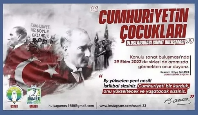 Mersin’de kurulu bulunan Uluslararası Kültür Sanat Topluluğu ve Sağlık Eko Turizm Derneği (USART), Cumhuriyet Bayramı’nda çeşitli ülkelerden 99 çocukla “Cumhuriyetin Çocukları” adlı uluslar arası sanat buluşması düzenledi.