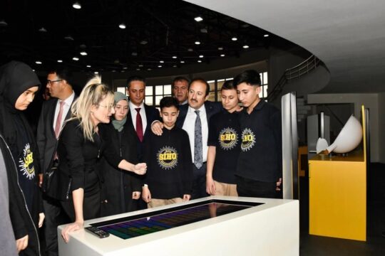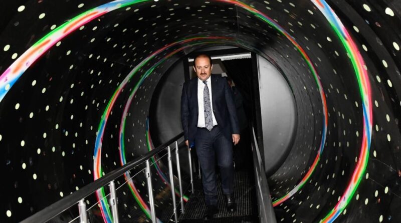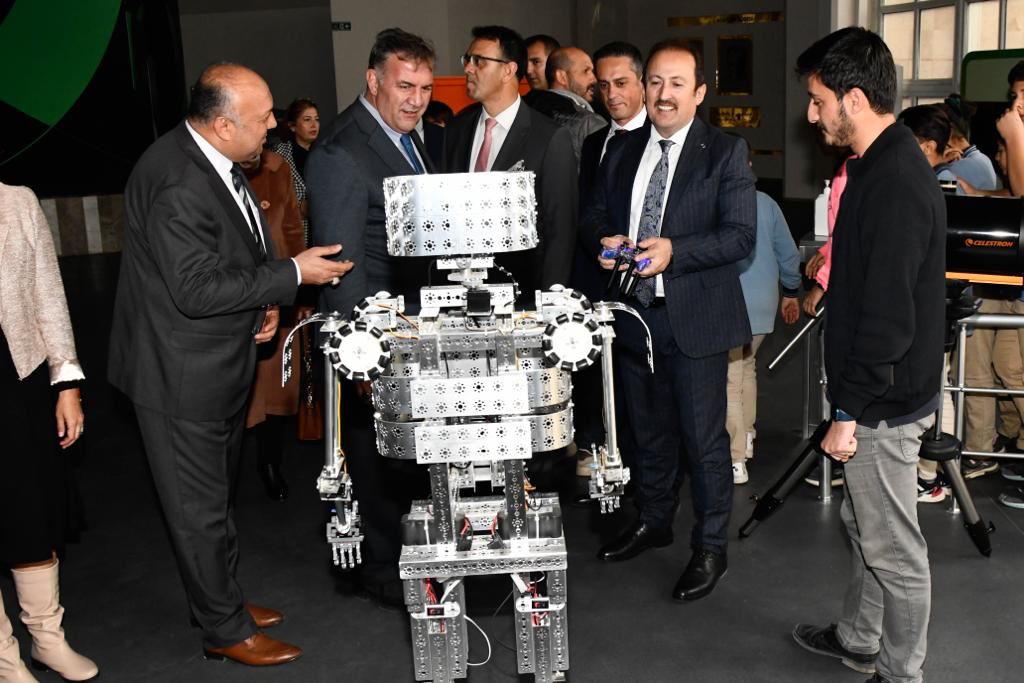 Aziz Sancar Bilim Okulu’na gelişinde Okul Müdürü, öğretmenler ve öğrenciler tarafından karşılanan Vali Pehlivan; Okul Müdürü Aslı Yeşil’den okul ile ilgili detaylı bilgiler aldı. Okuldaki kalp davulu, dijital mikroskop düzeneği, organlarımız, insan iskeleti, göz modeli, periyodik cetvel, Pisagor teoremi, Newton topları, interaktif topografya, elektromanyetik spektrum, suda dalga ile elektrik üretimi, meteoroloji istasyonu, denge tüneli, lazer piyano, planetaryum konulu interaktif istasyonları ve uzay istasyonu, güneş ve gezegen sistemleri atölyelerini gezerek öğrencilerle birlikte çeşitli etkinliklere katıldı. Okul öğretmenleri ile de bir araya gelen ve sohbet eden Vali Pehlivan eğitim öğretim hizmetlerinde başarılı çalışmalarının artarak devam etmesi temennisinde bulundu.
