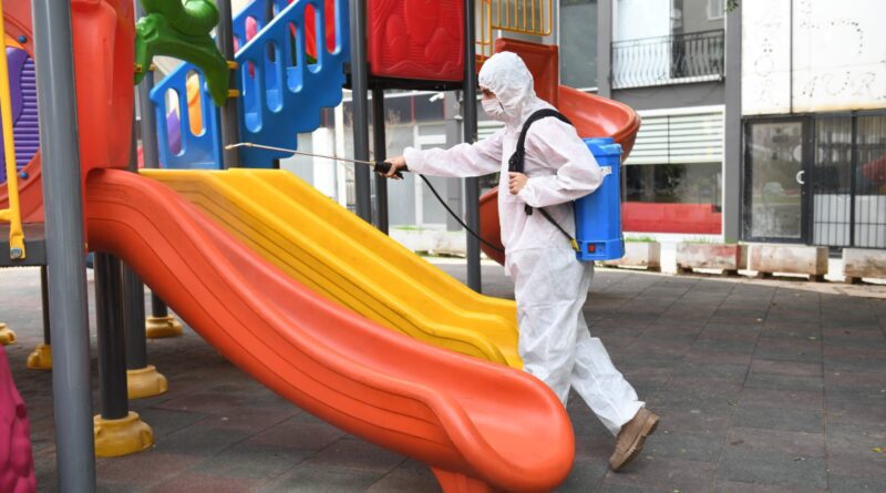 Korona virüsünün Türkiye’de ilk görüldüğü günden bu yana virüsle mücadele çalışmalarına devam eden Mersin Yenişehir Belediyesi, tedbirleri elden bırakmıyor. Yenişehir Belediyesi dezenfeksiyon ekibi, ilçe genelinde vatandaşların ortak kullandığı alanlarında dezenfekte çalışmalarını başarıyla sürdürüyor. Ekipler, ilçedeki tüm kamu kurum ve kuruluşları, ibadethaneleri, aile sağlığı merkezlerini, ATM’leri, siteler ve parklarda yer alan çocuk oyun grupları ile parklarda vatandaşların yoğun olarak kullandığı spor aletlerini dezenfekte ediyor. Ekiplerin bu çalışması sayesinde vatandaşlar ortak kullanım alanlarını gönül rahatlığı ile kullanabiliyor. Özellikle parklardaki oyun gruplarının büyük bir titizlikle dezenfekte edilmesiyle çocukların virüsle karşılaşma riski en aza indiriliyor. Haftanın 5 günü yaptıkları dezenfekte işlemleri ile ortak kullanım alanlarını daha sağlıklı hale getiren ekipler, virüs riski ortadan kalkıncaya kadar çalışmalara devam edecek.