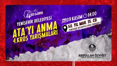 Mersin Yenişehir Belediyesi ve Mersin Gençlik ve Spor İl Müdürlüğü iş birliğiyle Ata’yı Anma 4. Kros Yarışmaları bu yıl da yapılacak. Yarışmalar 9 Kasım saat 14.00’te Yenişehir Belediyesinin 50.Yıl Mahallesi’nde kros yarışları için hazırladığı Yenişehir Kros Parkuru’nda yapılacak. Küçük Kız, Küçük Erkek, Yıldız Kız, Yıldız Erkek, Genç Kız ve Genç Erkek kategorilerinde sporcular Türkiye Cumhuriyeti’nin kurucusu, Ulu Önder Gazi Mustafa Kemal Atatürk’ü ebediyete irtihalinin 84’üncü yılında anmak için koşacak. Mustafa Kemal Atatürk’ün spora ve sporcuya değer verdiğini ifade eden Yenişehir Belediye Başkanı Abdullah Özyiğit, Atatürk’ü Yenişehir’de kültür, sanat ve spor etkinlikleri ile anmaya devam ettiklerini söyledi.